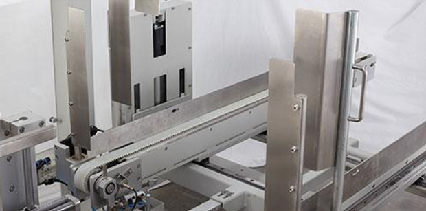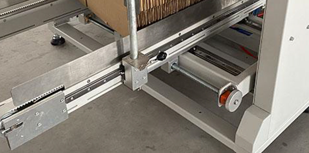 由伺服控制的推箱机构,传送速度可调,进入夹持带的距离可控,输送稳定性更强。