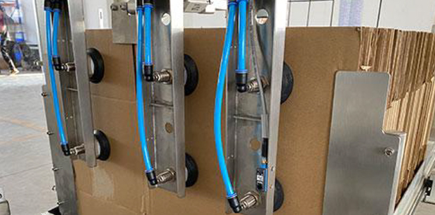 3组真空吸盘,由伺服驱动控制取箱,抓取位置准确固定,使两面纸板能够保持同一平面,纸箱成型率更高。