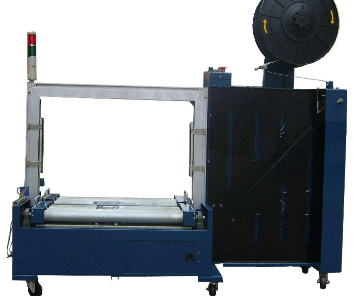 此机专为全自动捆包而设计,桌面附加动力滚轮,适合大件重型捆包物,大小不一,形状较不规则的捆包线上,衔接输送带可以达到完全无人化的功效。 捆包物大小、轻重,可依客户需要而设计。 驱动部分,加防尘盖,采特殊之设计,运转无声、安全,有力。